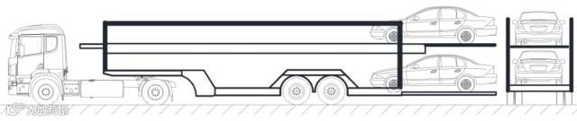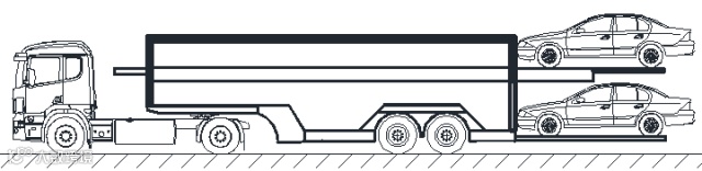 “单排车”是指上下单排装载,以及尾部装载的乘用车至少有一轴装载于车辆运输车车厢后立柱以内的,不符合国家标准的车辆运输车。暂时允许过渡运行的“单排车”单排装载方式如图2所示,2016年9月21日-2018年6月30日,暂时允许本方案发布之日前注册登记的“单排车”过渡运行。