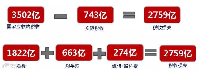 两者之差是2759亿,也就是说国家每年在公路运输行业的损失是2759亿。如果我们把油费、路桥费、购车费加在一起也是2759亿。