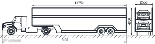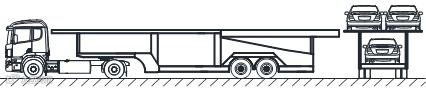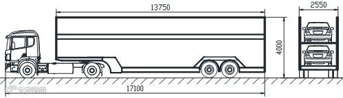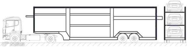 “单排车”是指上下单排装载,以及尾部装载的乘用车至少有一轴装载于车辆运输车车厢后立柱以内的,不符合国家标准的车辆运输车。暂时允许过渡运行的“单排车”单排装载方式如图2所示,2016年9月21日-2018年6月30日,暂时允许本方案发布之日前注册登记的“单排车”过渡运行。