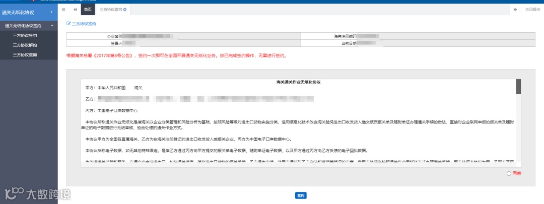 ● 签约需要海关审批,解约无需海关审批。三方协议签约的最终状态为签约海关审批、签约海关退单;三方协议解约的最终状态为解约成功。