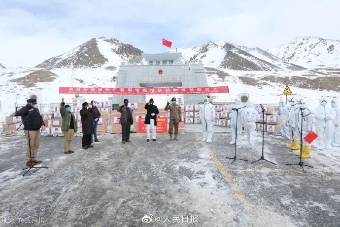27日中午,新疆维吾尔自治区援助巴基斯坦的一批应急医疗物资通过红其拉甫口岸,经由陆路运送至巴基斯坦境内。据介绍,此次援助是新冠肺炎疫情爆发以来新疆第二次向巴基斯坦提供援助,援助物资包括20万只医用口罩、2000只N95口罩、2000件医用防护服、2400份检测试剂盒以及5套呼吸机。此前,新疆方面已经通过驻巴基斯坦大使馆向巴方捐赠了10万只医用口罩。(@人民日报)