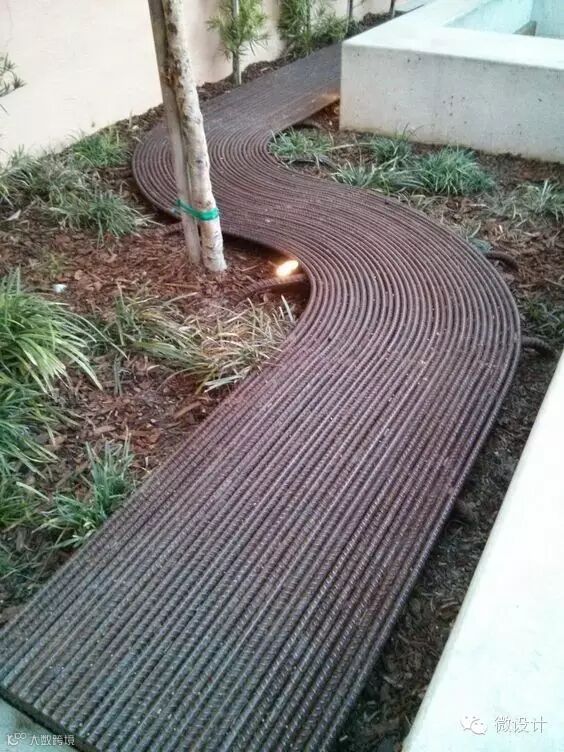 排排列的钢筋做园路,