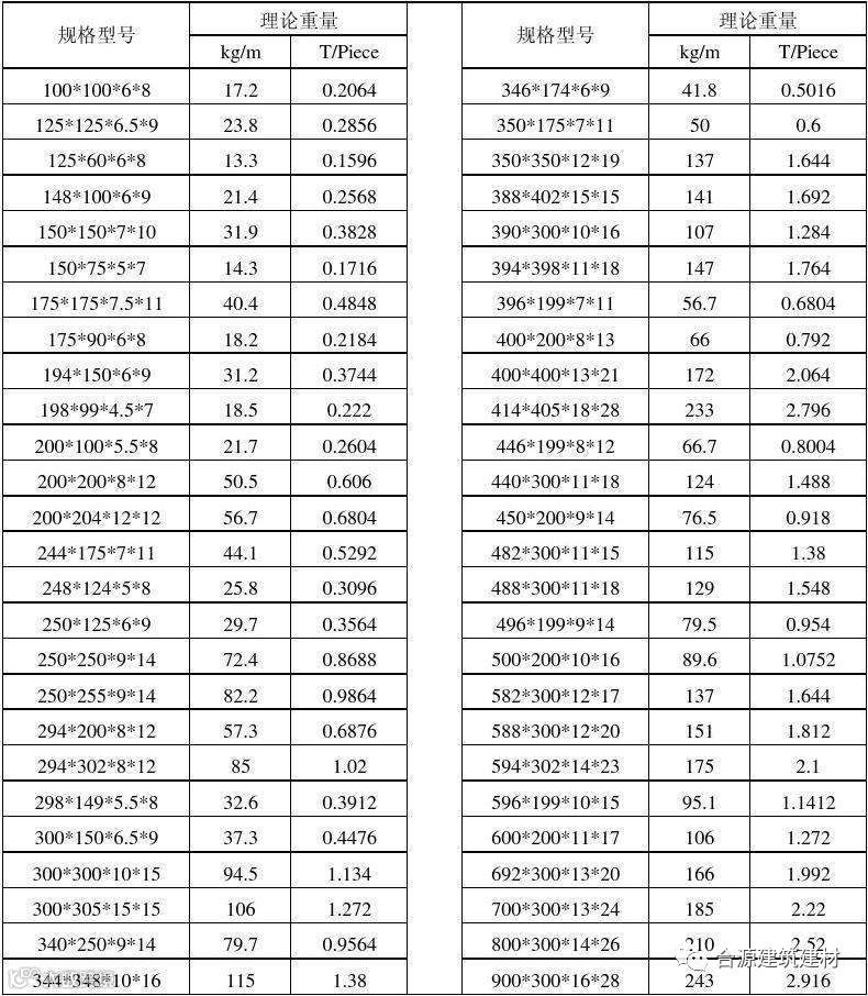 下面就是H型钢常用的规格表,具体的规格尺寸请与我们的销售人员进行联系。