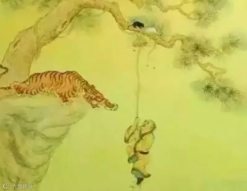 “与其被老虎捉到,活活被咬、肢解,还不如跳入悬崖,说不定还有一线生机。”