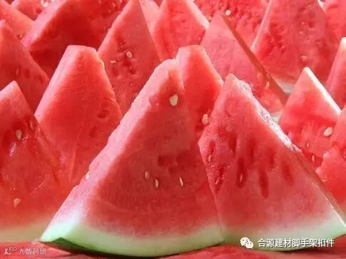 7.西瓜 味甘,性寒,入心、胃、膀胱经,具有清热解暑、除烦止渴、利小便的功效。生吃即可起效,既适用于夏日保健,又可用于急慢性肾炎、高血压的辅助治疗。如果把西瓜皮留着,熬汤喝效果更佳。