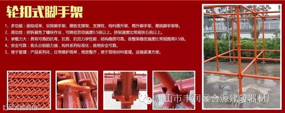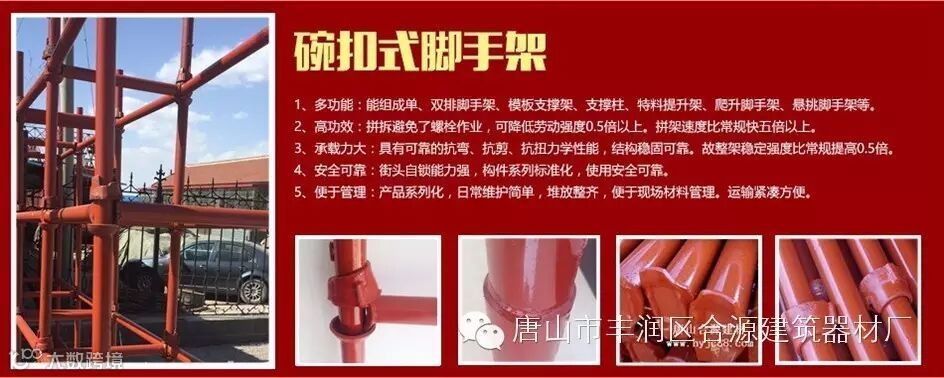 唐山市丰润区合源建筑器材厂主要从事生产销售碗扣式脚手架,轮扣式脚手架、圆盘脚手架、脚手架扣件、及其配件行业已有十多年,生产销售经验丰富。在激烈的市场竞争中,以信誉为本,以质量为生命,一如既往地竭诚为广大用户提供一流的产品和一流的服务。