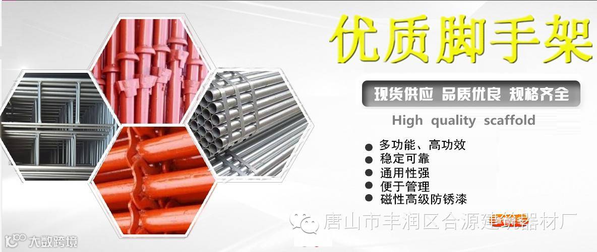 唐山市丰润区合源建筑器材厂主要从事生产销售碗扣式脚手架,轮扣式脚手架、圆盘脚手架、脚手架扣件、及其配件行业已有十多年经验。在激烈的市场竞争中,以信誉为本,以质量为生命,一如既往地竭诚为广大用户提供一流的产品和一流的服务。