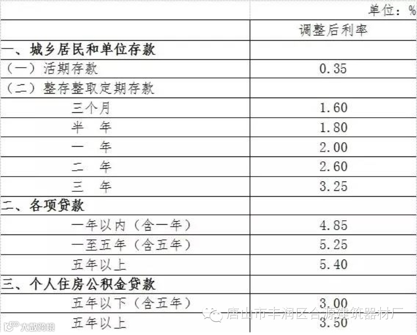 先看这一次的金融机构人民币存贷款基准利率调整表: