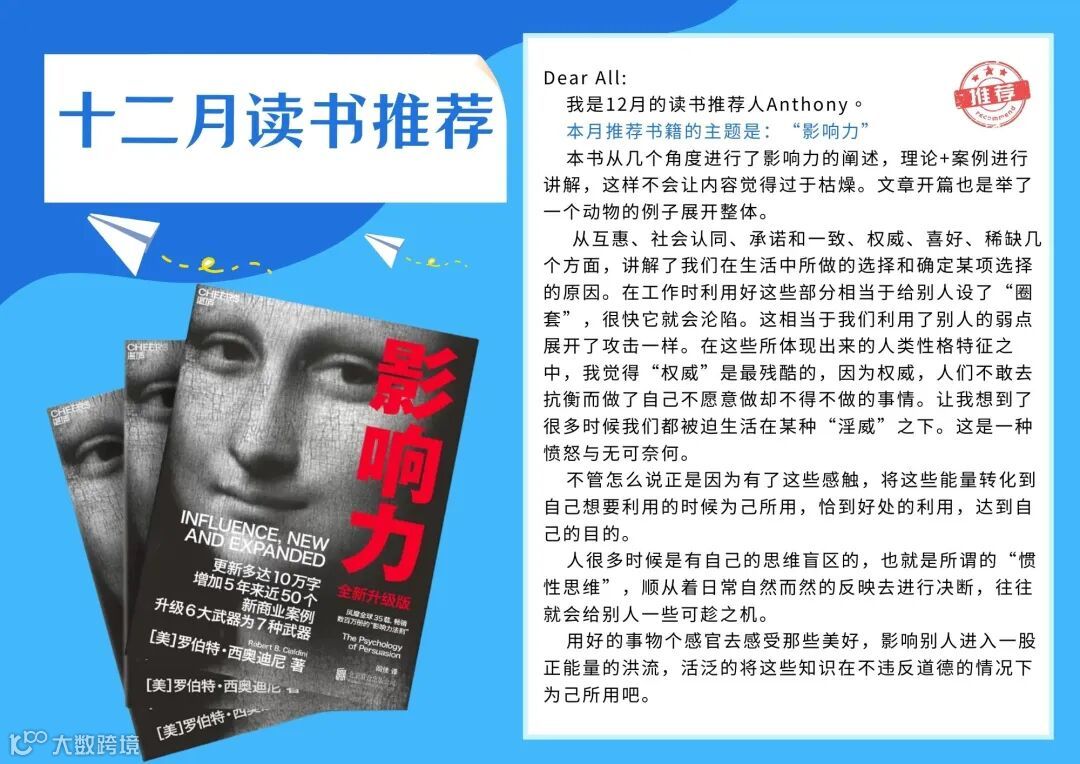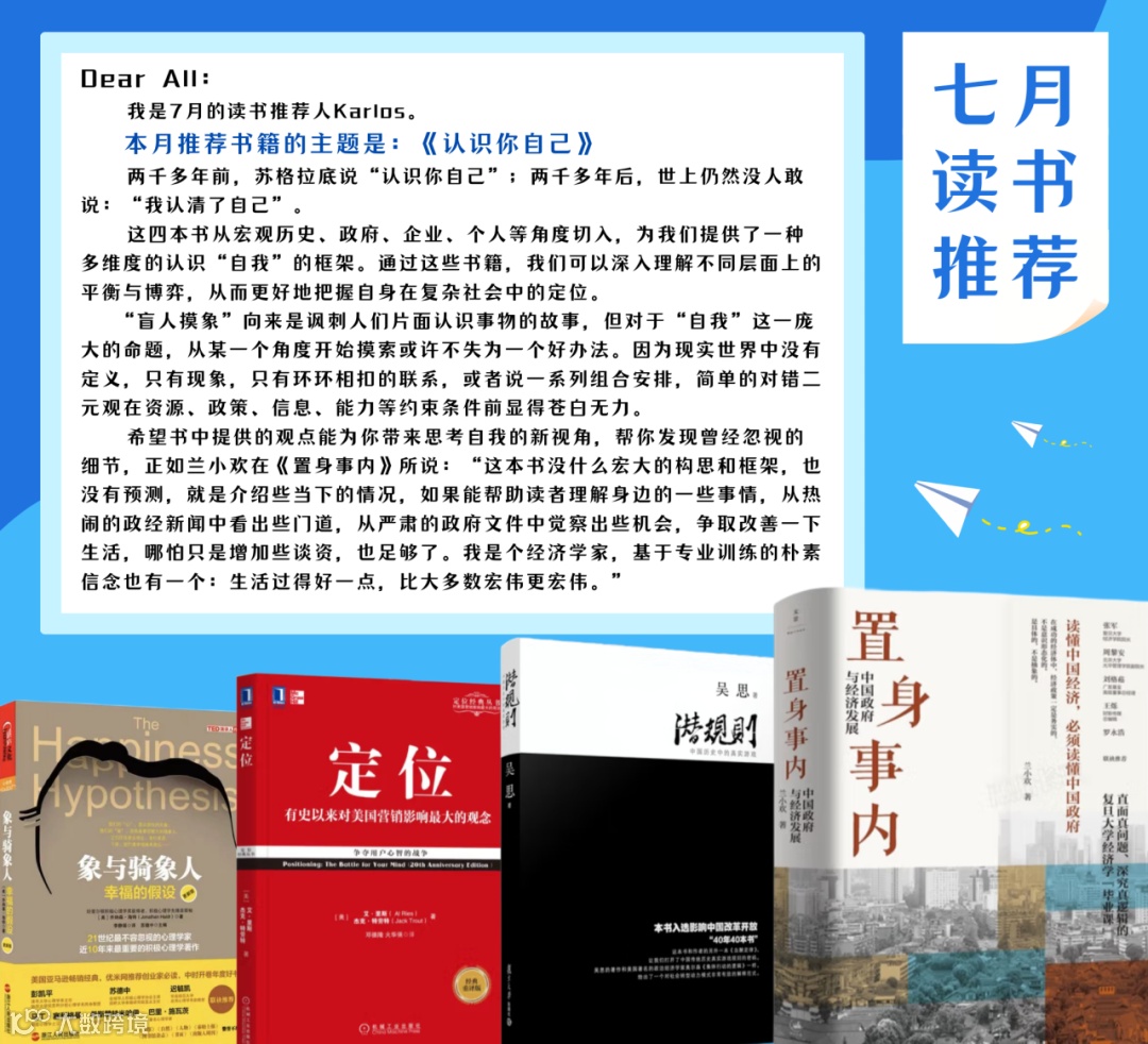 1、推荐人可于每月15日指定次月书籍主题、主题书籍书评及推荐书籍名单发给负责人。