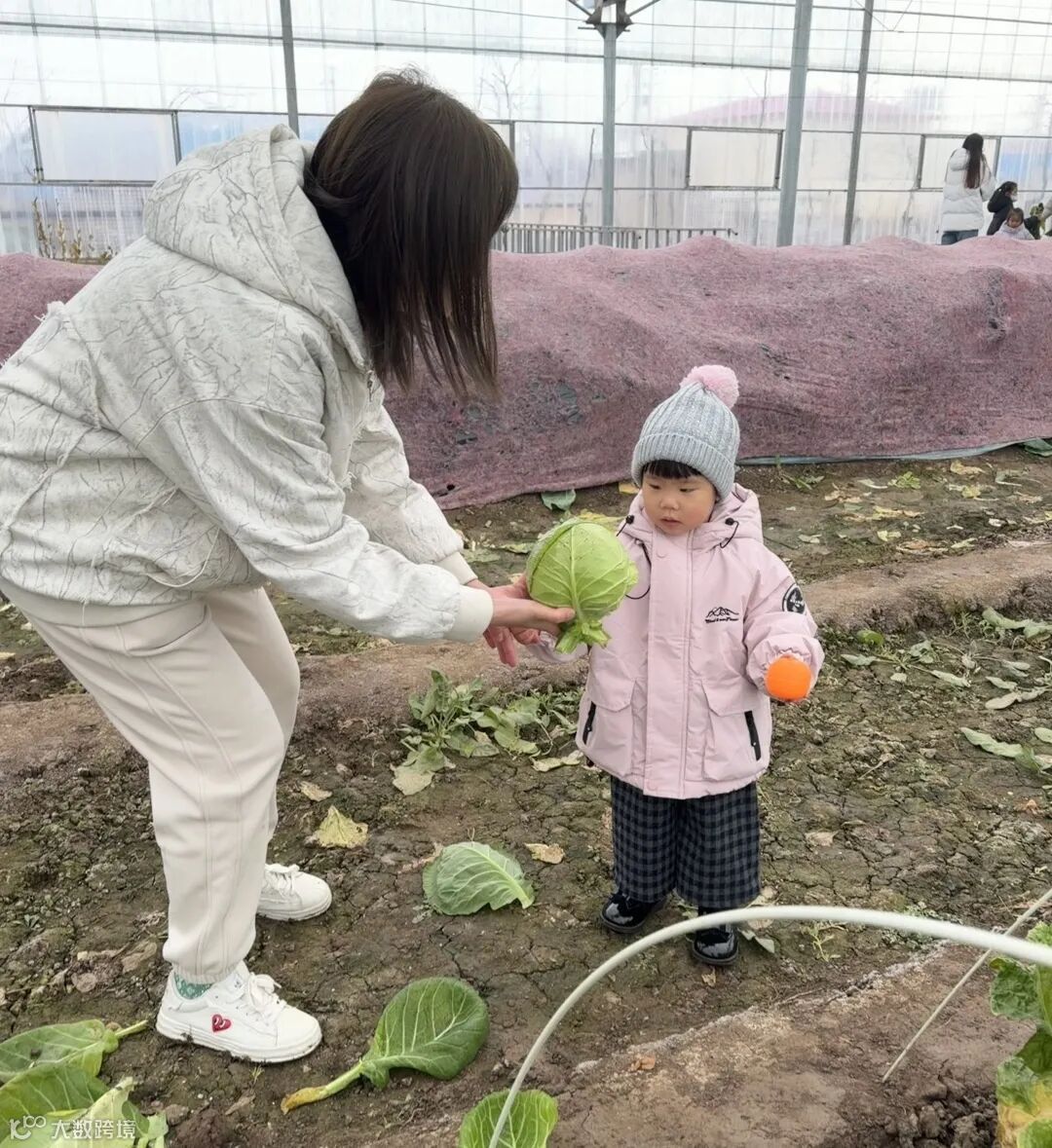 走进专属大棚,满眼都是生机盎然的瓜果蔬菜,绿油油的大白菜、圆滚滚的红皮萝卜等时令果蔬整整齐齐地“站”在地里,一派生机勃勃的景象瞬间点燃了大家的热情。在领导的热情指引下,员工与孩子们有序进入采摘区域,大手牵小手穿梭在整齐的田垄之间,细心挑选、轻轻采摘,尽情体验着劳作的乐趣与收获的喜悦。在采摘过程中,孩子们近距离观察农作物的生长状态,感受自然的神奇与馈赠,环保意识与劳动观念也在潜移默化中得以培养。