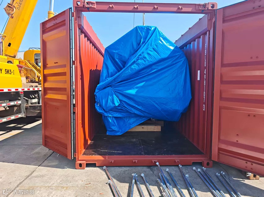 物流部接到客户委托后,迅速安排相关人员至场地测量货品,深入分析货物参数、装箱条件和绑扎要求,深入分析货物参数、装箱条件和绑扎要求,发现箱体内部尺寸上能够容纳货物,但难点在于货物宽度与箱体宽度相差仅10cm,吊装难度太高且存在一定风险,同时货物重量太大,容易压坏钢制地板。通过定制加固方案,同时保障吊装稳定性,吊装后对货物进行整体加固和防水处理。为客户设计单独的支撑木架,将货品牢牢固定在箱子内。