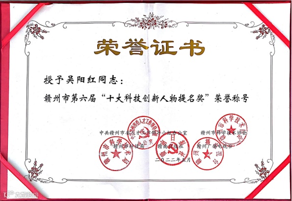 5月30日,赣州市举办第六届“十大科技创新人物”表彰大会,表彰我市经济社会发展作出突出贡献的科技工作者,腾远钴业吴阳红同志被提名为“十大科技创新人物”。