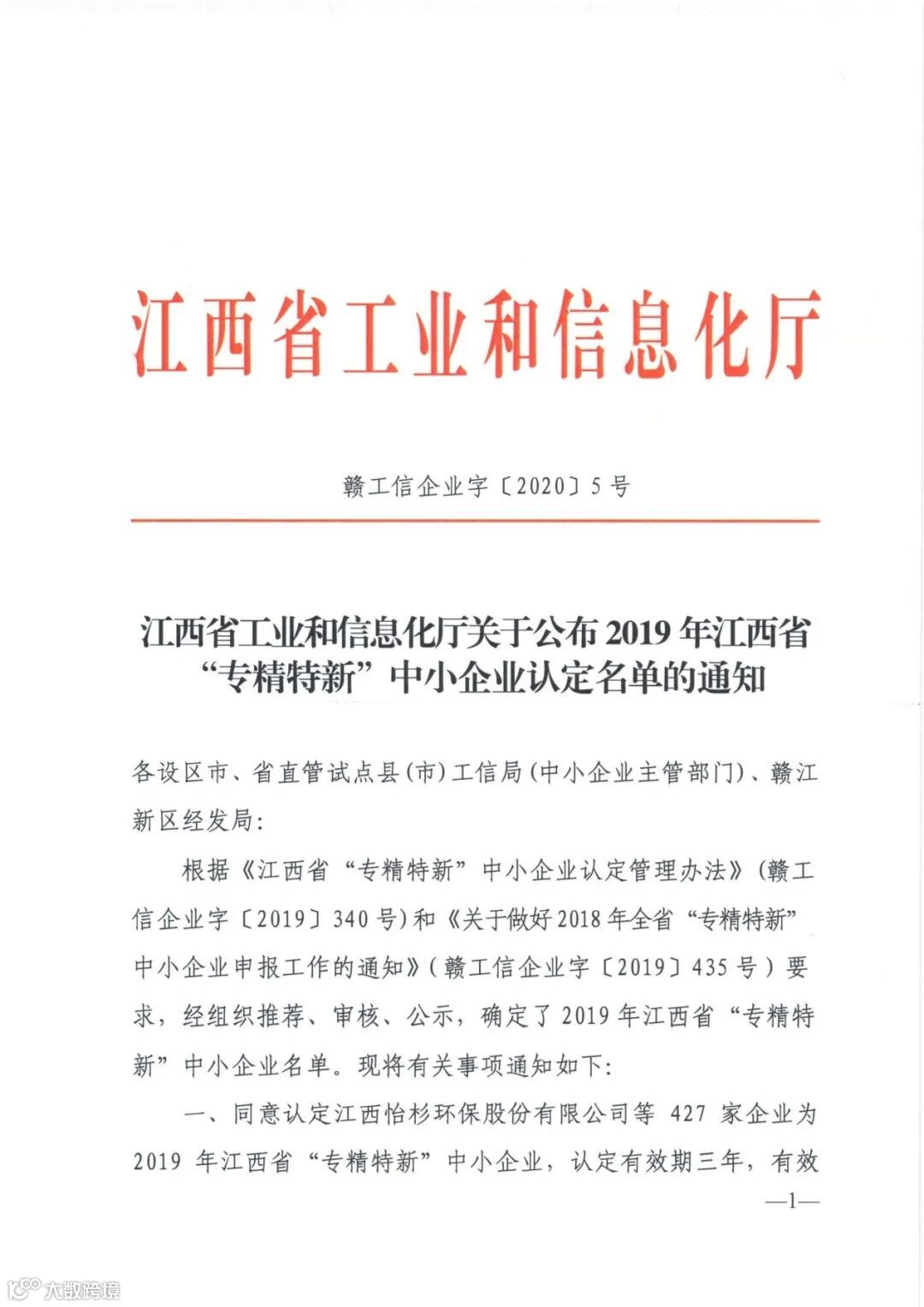 赣州腾远钴业新材料股份有限公司响应政府号召,不断加大自主研发投入,提升核心技术能力,经推荐及第三方审核,腾远钴业被江西省工业和信息化厅评为“2019年江西省专精特新中小企业”。