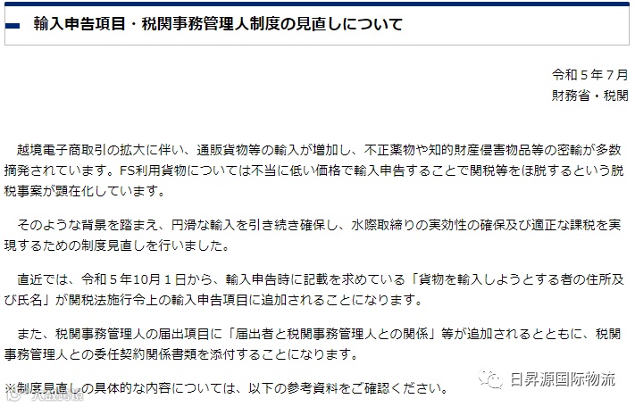 日本海关十月一号起,严查跨境电商可能涉及代行进口商的所有进口货物,包含但不限于虚假冒用进口商、海外仓代行进口商、invoice形式发票上进口商和收货地址不一致的货物等一切可能被怀疑涉及三方代行进口商的货物。