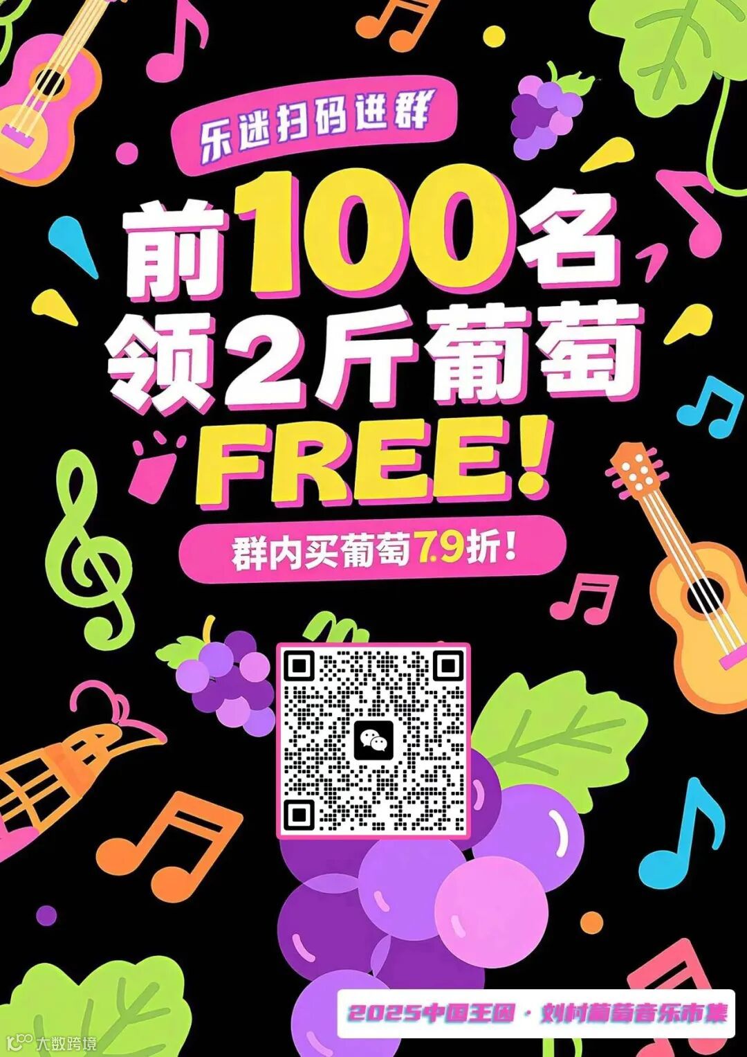 (栗子🌰:“去刘村摘葡萄听音乐!放飞!” 或“葡萄+音乐,我的暑假C位!”)
