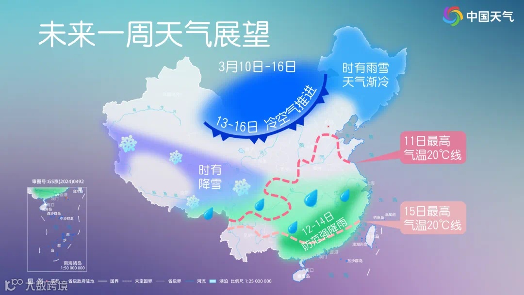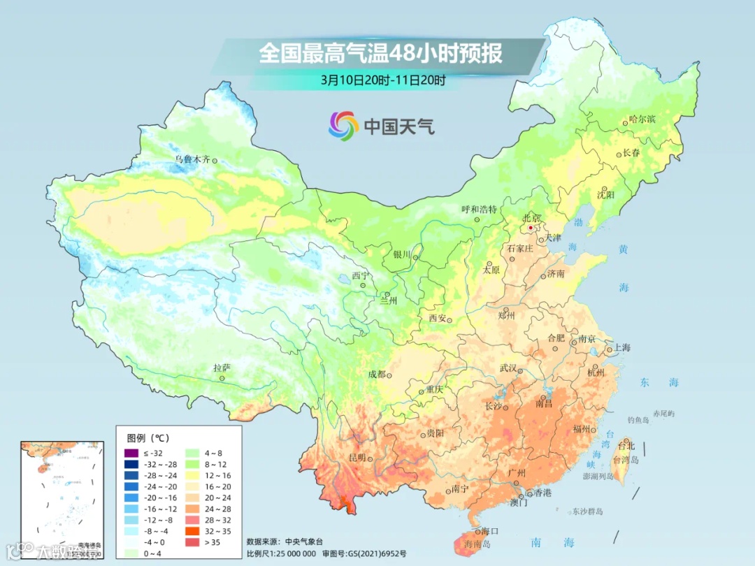 10日(周一),晴间多云,南风3~4级,最低气温5℃,最高气温17℃;