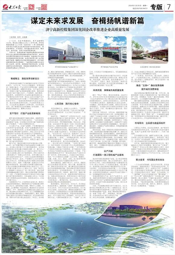 1—11月,与去年同期相比,资产总额增长24.18%,营业收入增长32.35%……今年以来,济宁高新控股集团(以下简称“高新控股”)深入贯彻落实党中央关于国有企业改革深化提升行动相关要求,聚焦资源整合、产业整合、项目建设等重点任务,精准发力、奋力攻坚,各项工作取得显著成效。