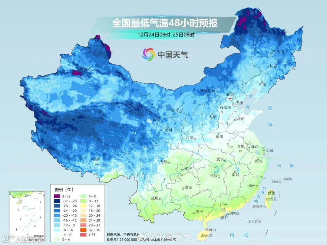24日(周二),晴间多云,南风2~3级,最低气温-4℃,最高气温6℃;