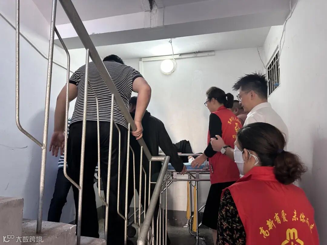近日,服务队得知社区居民邵老师腰部手术后在归家上楼时面临困难,便迅速响应,组建了一支由社区两委成员、网格员及志愿者构成的特别援助小组。在行动前,服务队详细了解和评估了邵老师的身体状况,将护腰带细心地围在邵老师腰部,防止腰部损伤。考虑到西闸小区作为老旧小区没有电梯的实际情况,小组成员们齐心协力,小心翼翼地将邵老师抬至四楼家中,并叮嘱其好好休息。