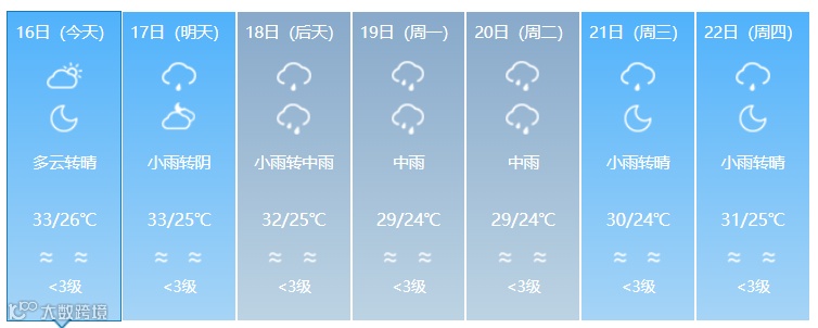 另外,大部地区气温较为稳定,最高气温34℃左右。