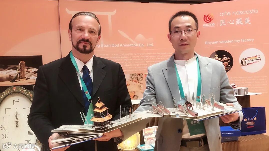 在山东豆神动漫有限公司,《走近孔子》曲阜孔庙立体书研发团队正围绕英文版立体书的生产制作进行研讨交流。为了使中国文化更好地“走出去”,豆神动漫启动了《走近孔子》立体书英文版的翻译工作。作为“山东手造”项目的一部分,近日,《走近孔子》立体书英文版先后亮相于意大利、法国等欧洲国家,踏上了一段跨越国界的旅程。