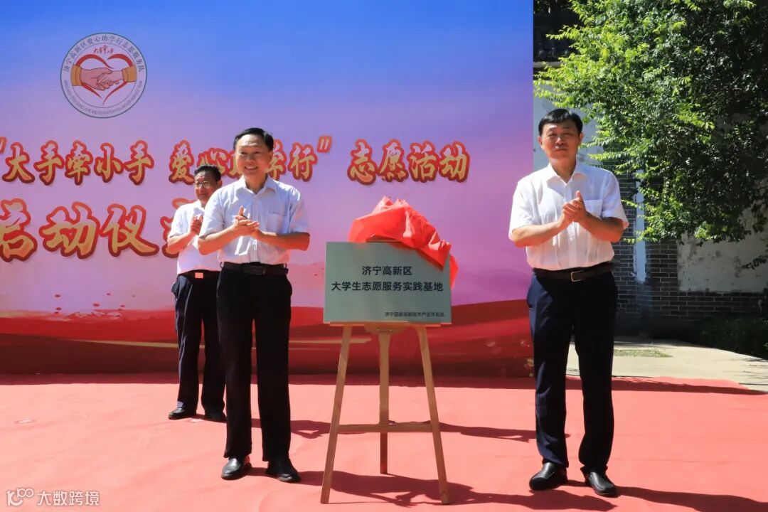 活动中,与会领导为参与活动的中小学生发放助学文具礼包,为上一批志愿活动中表现优异的优秀大学生志愿者颁发荣誉证书,同时为济宁高新区大学生志愿服务实践基地揭牌,志愿活动大学生代表作了表态发言。