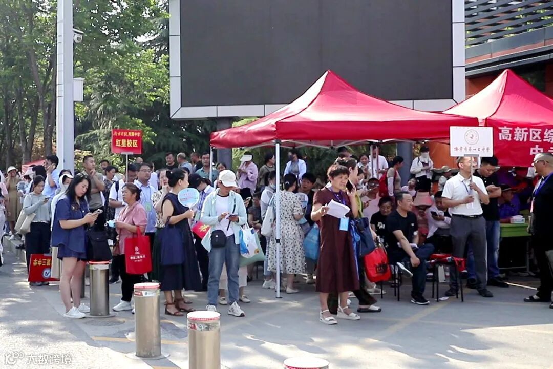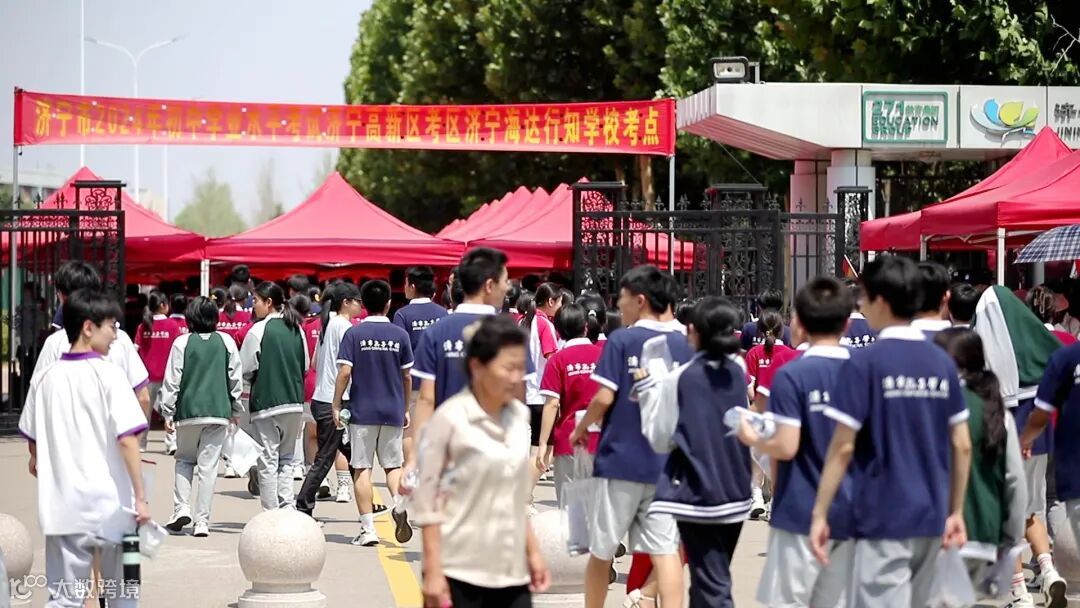 第一天我觉得来给孩子加加油,给他说的平静平静,不要紧张,跟平常考试一样就行,尽力就行。