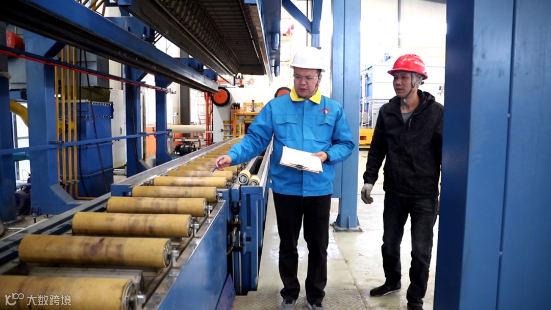 在山东明达圣昌铝业集团5000吨挤压生产线,技术工人们正在查看新型号产品的监控数据,做好产品下线前的各项检测工作。