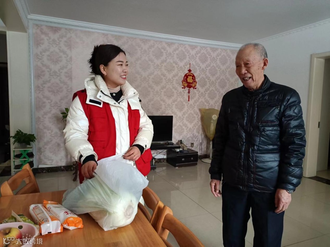 冒着风雪、穿过湿滑的道路,“网格代办小分队”便开始行动了,他们去菜市场购买了豆腐、芹菜、白菜、蘑菇、挂面等蔬菜食物,送往辖区内的孤寡老人、独居老人家中。在欧隆盛源小区居住的八十岁独居老人解大爷收到暖心蔬菜激动地说:“今天早上本想去菜市场买菜,但路况不太好,我一直没敢出门。你们真是雪中送炭,给我送来这么多新鲜菜,太温暖了。”离开老人家中时,“网格代办小分队”叮嘱老人雪天减少外出,有需求随时给社区打电话。