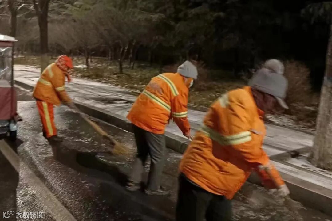 为给广大市民创造良好的出行环境,区综合行政执法局迅速启动应急预案,积极展开扫雪除冰工作,共出动扫雪除冰作业车辆28台,撒布融雪剂6吨,组织环卫作业人员380人清扫路面,全力保障群众安全出行。