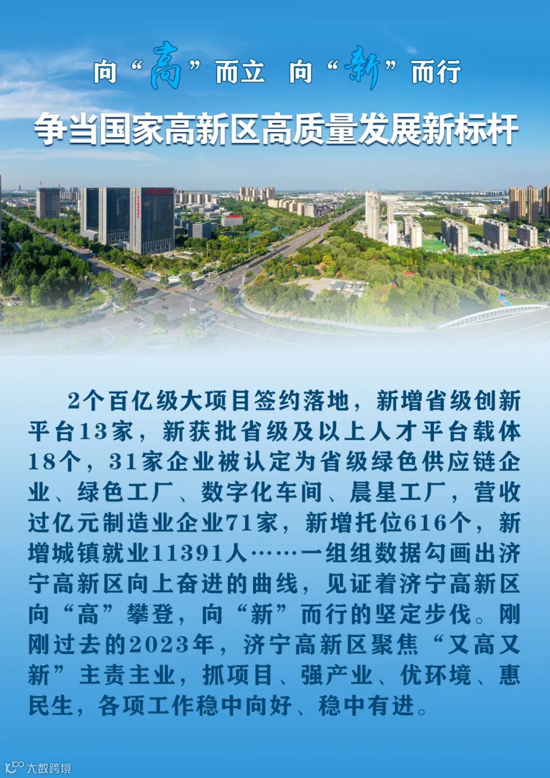 接续奋斗开新局,奋发有为争一流。2024年,济宁高新区将全力推进“1477”发展思路布局,进一步提振信心、加压奋进,扎实推进经济运行、科技创新、产业发展、招商引资、产城融合、民生保障等重点工作,奋力谱写“高”和“新”的崭新篇章,争当国家高新区高质量发展新标杆。