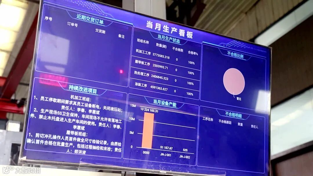 凭借过硬研发实力撬动海外大市场的同时,企业通过创新驱动,聚焦生产管理关键环节,开启数字化转型道路。近几年,企业上新MES和EDM管理系统,有效实现了无纸化、数字化办公。如今,从车间加工一线到最终质检环节,员工只需通过手中的PAD设备,即可随时查阅当前订单情况以及生产过程中的各类操作说明和图纸。实时更新的MES电子看板上,当月生产状态、近期交货订单、设备产能等数据情况一目了然。山东聚宁机械有限公司生产部副总经理张连伟说道:“今年正在规划把MES管理系统进一步优化,把设备管理和质量管理统一纳入到整个管理系统来,让生产质量、过程和设备的利用率、跟踪性做到更好的衔接,更及时有效的完成客户的订单。”