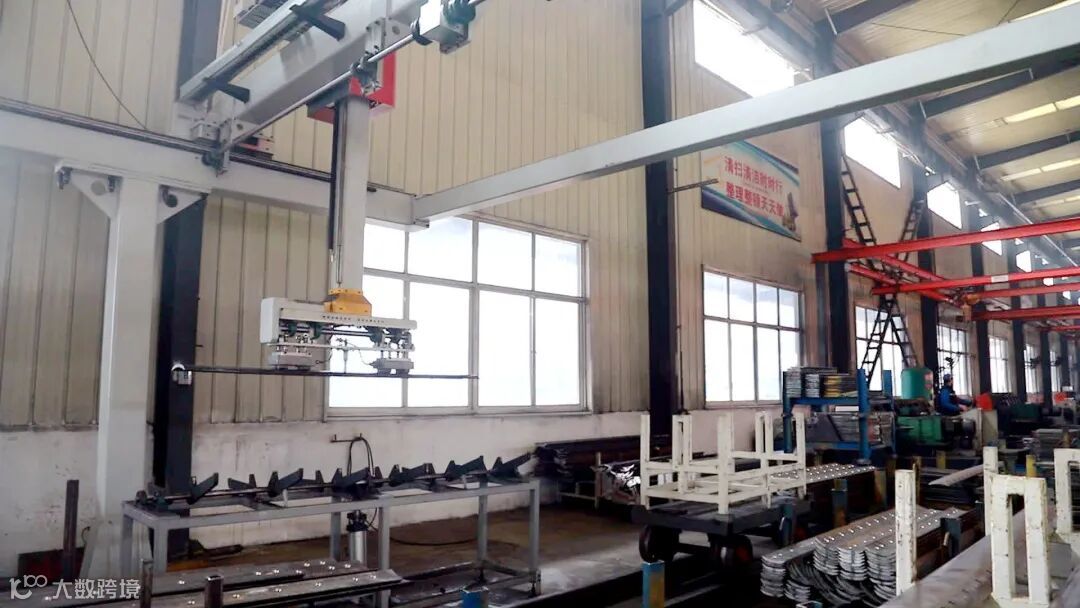 在企业机加工中心,一条全新的推土机刀片自动化生产线已完成安装,即将投入使用。这条生产线采用双动力头模式,通过桁架将钻孔和冲方两个工序整合到一起,还安装了能助力精准加工的3D视觉识别摄像头,让加工更简单、周转更便捷。“原来由两个人看着设备,现在只需要一个人,它的效率能够提高到原来的3—4倍。2024年4、5月份,我们会增加AGV或RGV小车,让设备进行自动物料周转,把自动化生产线从钻孔到铣坡口再到冲方整个联系在一起。”山东聚宁机械有限公司生产部副总经理张连伟介绍道。