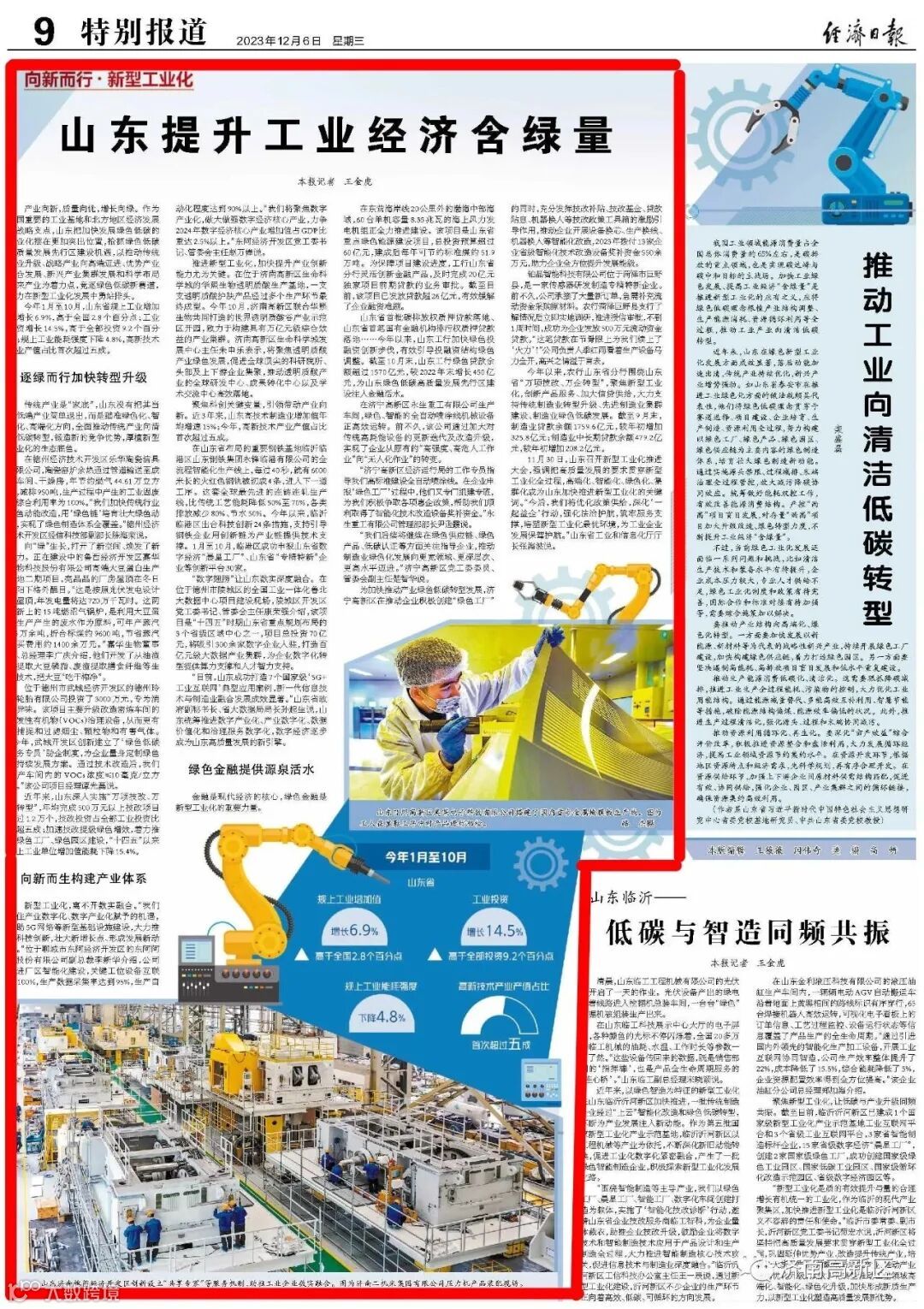 在山东,得益于新型工业化建设,不少企业正步入发展快车道。坚持把高质量发展的要求贯穿新型工业化全过程,山东以高端化、智能化、绿色化、集群化为方向,以加快制造业转型升级、增强核心竞争力为重点,纵深推进先进制造业强省行动,加快构建现代化产业体系。