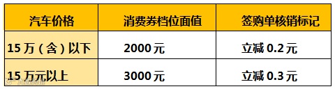 不同消费券核销显示不同立减金额作为标记(立减金额由汽车零售企业承担),资格券核销对应标记如下: