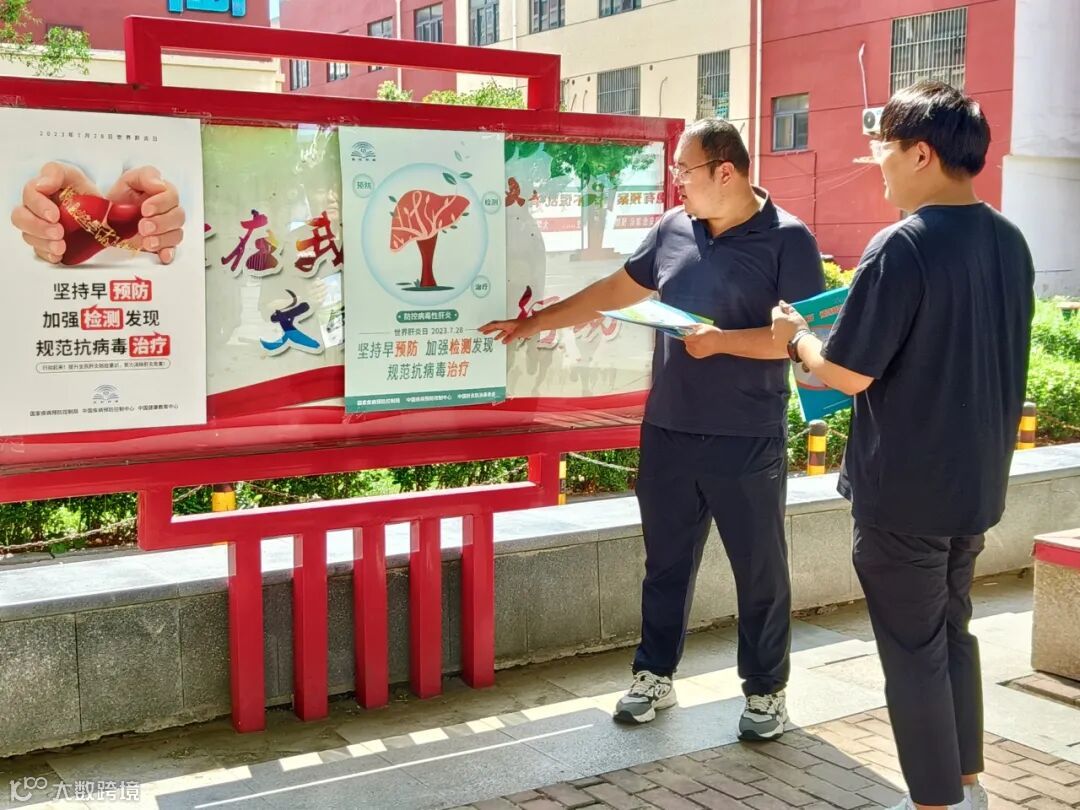 各街道卫生院(社区卫生服务中心)预防接种门诊工作人员走进社区、广场等人员密集场所,通过悬挂横幅、张贴主题海报、发放宣传资料等形式,向广大市民宣传肝炎知识,提高群众对防治肝炎重要性的认识。
