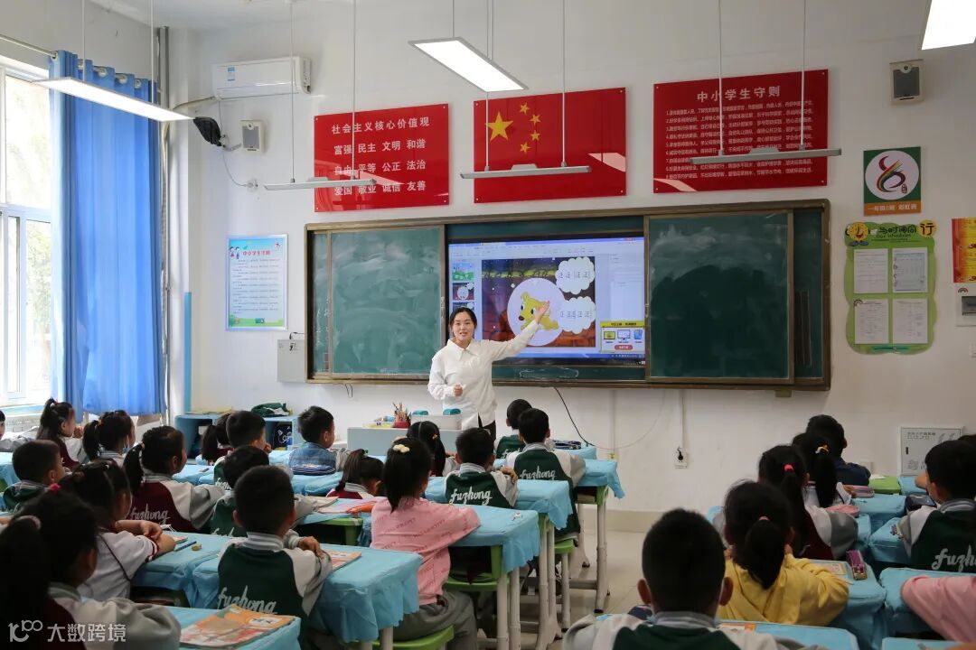 在崇文学校小学部一年级八班的教室内,实习支教老师于欣茹正给学生们上音乐课。在于欣茹的鼓励下,孩子们纷纷举手参与互动,课堂氛围欢快热烈。
