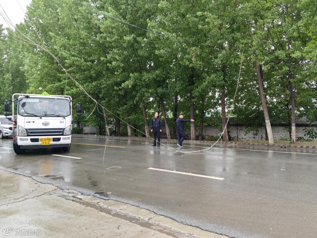 检查中,执法人员深入辖区内农村公路和沿线桥梁,对道路盲点、死角和车流量大的路段进行详细分析,同时针对交通标志、标线、安全警示设施缺乏等隐患,进行全面、深入的清理排查。在排查过程中,执法人员发现申庄村路口有电线脱落,悬挂在道路中间,给出行村民带来不便,而且存在严重的安全隐患。执法人员当即通知街道,配合街道工作人员对掉落电线进行了固定处理,使行人、车辆能够正常通行。