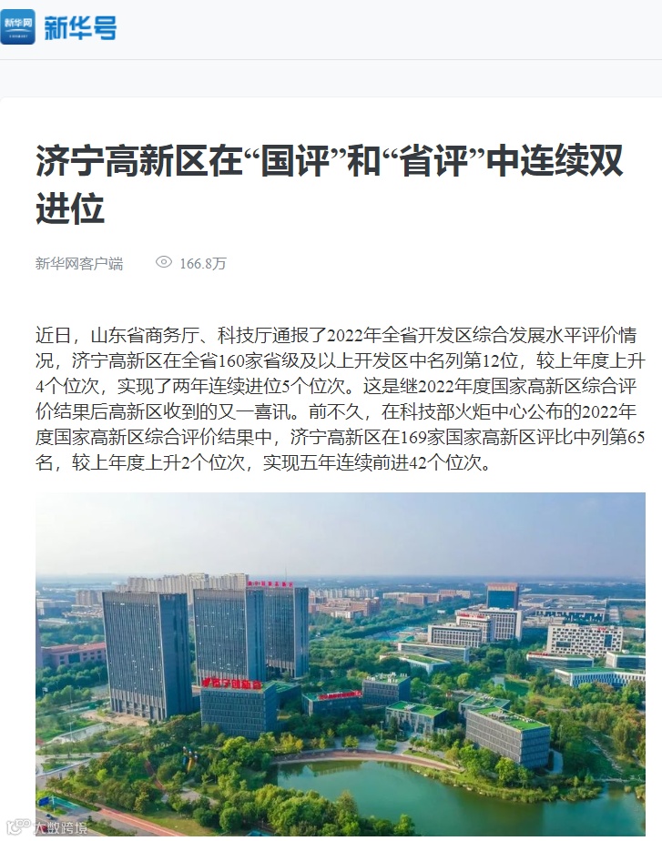 喜报!全国高新区排名出炉 济宁高新区连续五年进位!