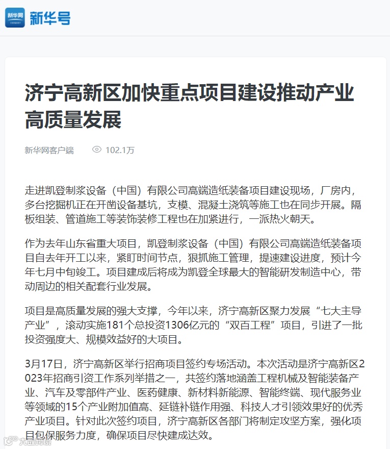 《济宁高新区加快重点项目建设推动产业高质量发展》,深度报道济宁高新区坚定不移抓招商、上项目、做产业、增投资,建设众多优质载体,全力打造高能级产业集聚地。