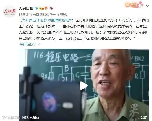这个与时俱进的老教师通过直播教授电学电工知识,践行着自己回报社会、活到老学到老的人生信条。
