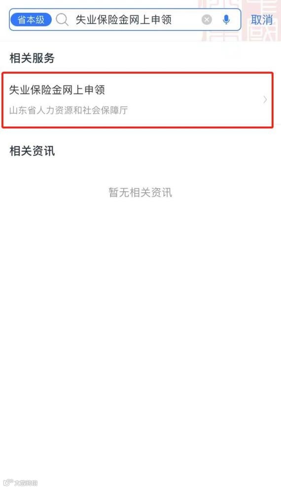 登录“爱山东”APP,首页搜索“失业保险金网上申领”,点击进入;