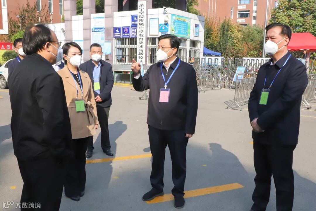 在济宁学院附属中学教育集团高新校区考点,陈成华实地察看疫情防控、考风考纪、服务保障等重点环节,详细了解考试组织、考务管理、安保、保密等工作情况。