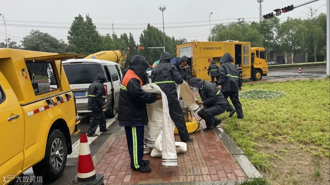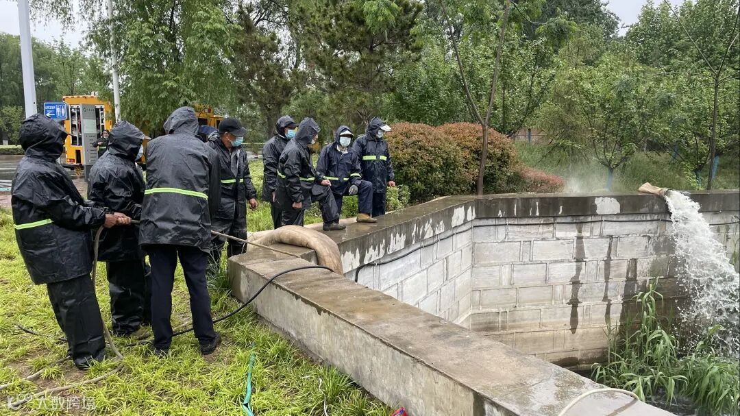 本次演练模拟场景为济宁高新区突降强暴雨,辖区内部分路段出现积水。随着一声令下,高新区抢险分队携带各类防汛工具集结完毕,赶赴积水点实施强排,开启桥涵泵站提水。抢险分队启动大型排涝车及移动式排涝泵,加快排水进度。随后,积水逐渐被抽离,演练圆满完成。