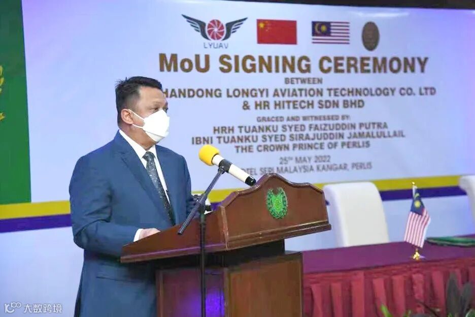 5月25日,山东龙翼航空科技有限公司与马来西亚HR高科技有限公司无人机项目签约仪式举行。副市长张东、马来西亚玻璃市州王储,山东龙翼航空科技有限公司董事长王悦来,马来西亚HR高科技有限公司董事、CEO温佳荟分别致辞,区党工委书记刘章箭出席仪式。