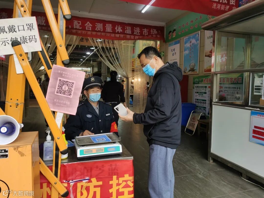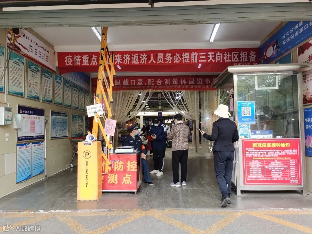 进入市场内的人员必须要扫描场所码,佩戴口罩,前后保持1米的距离进入。市场内的商户都必须进行一天两次体温检测,一天三次消杀,佩戴口罩。蔬菜方面,我们设置了快检室,每天都进行抽查抽样,对蔬菜进行快检。目前市场蔬菜的供应,都能够满足周边居民的日常生活的需求。