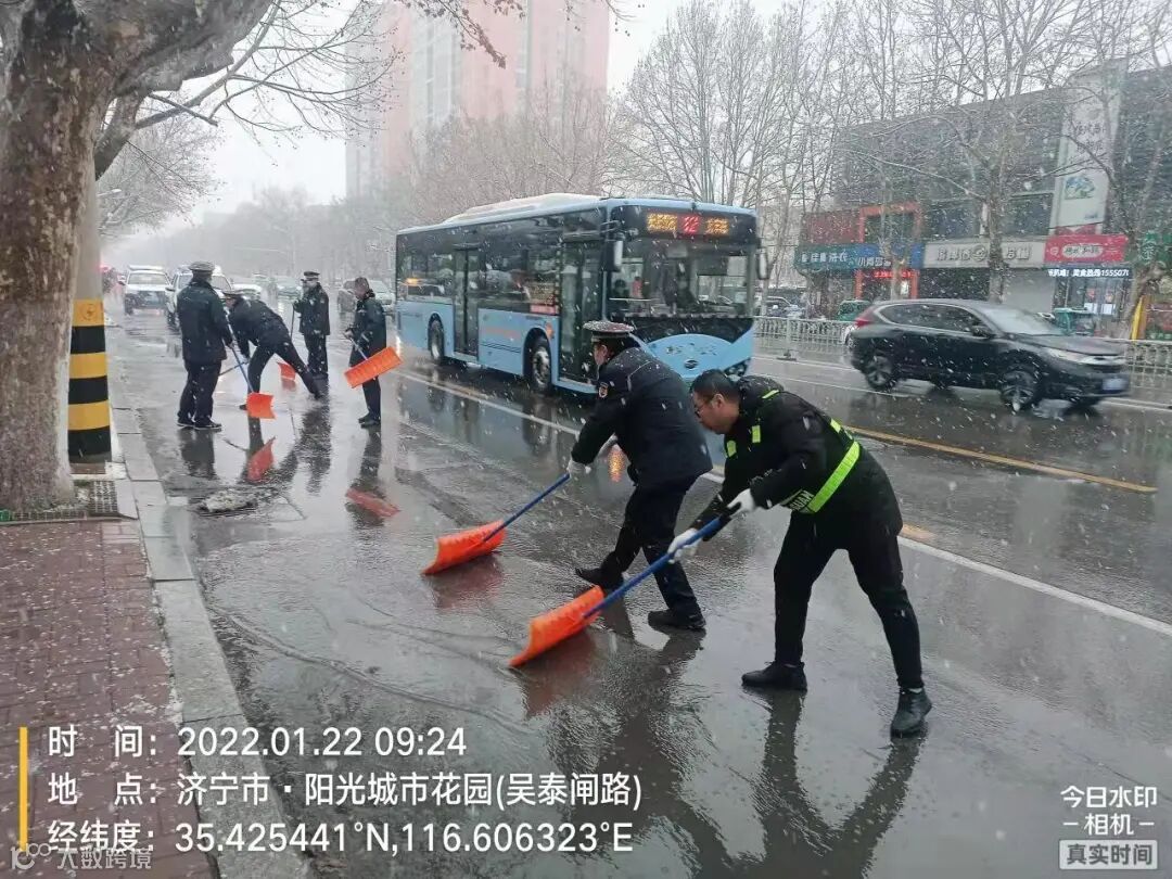 1月22日06时20分山东省气象台发布道路结冰黄色预警信号,按照关于切实做好雨雪冰冻天气应对防范工作的通知要求,济宁高新区为有效应对本轮极端天气对道路交通、城市环境的影响,科学部署,周密安排, 采取措施全力做好雨雪冰冻天气应对防范工作。