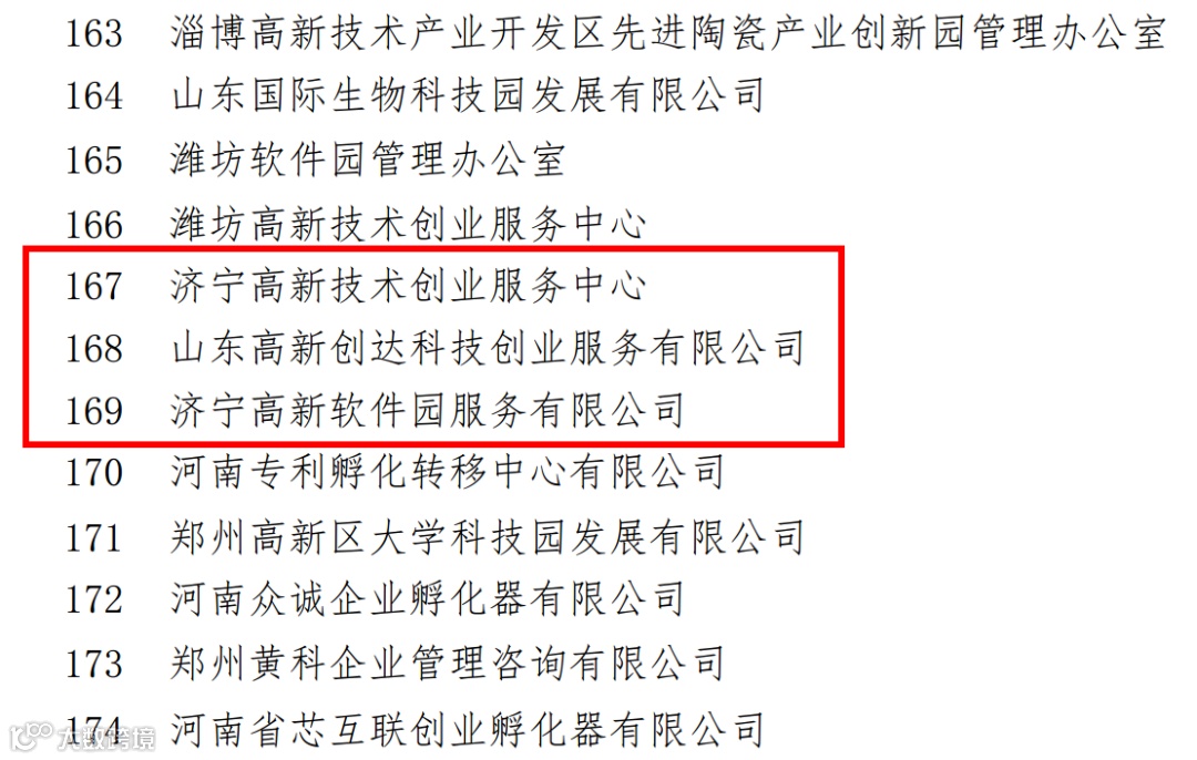 近日,科技部火炬中心公布了国家级科技企业孵化器2020年度评价结果,济宁高新区济宁高新技术创业服务中心、山东高新创达科技创业服务有限公司、济宁高新软件园服务有限公司3家孵化器被评为优秀(A类),也是济宁市获得此项荣誉的仅有3家。其中,济宁高新技术创业服务中心连续两年被评为优秀(A类)国家级科技企业孵化器。