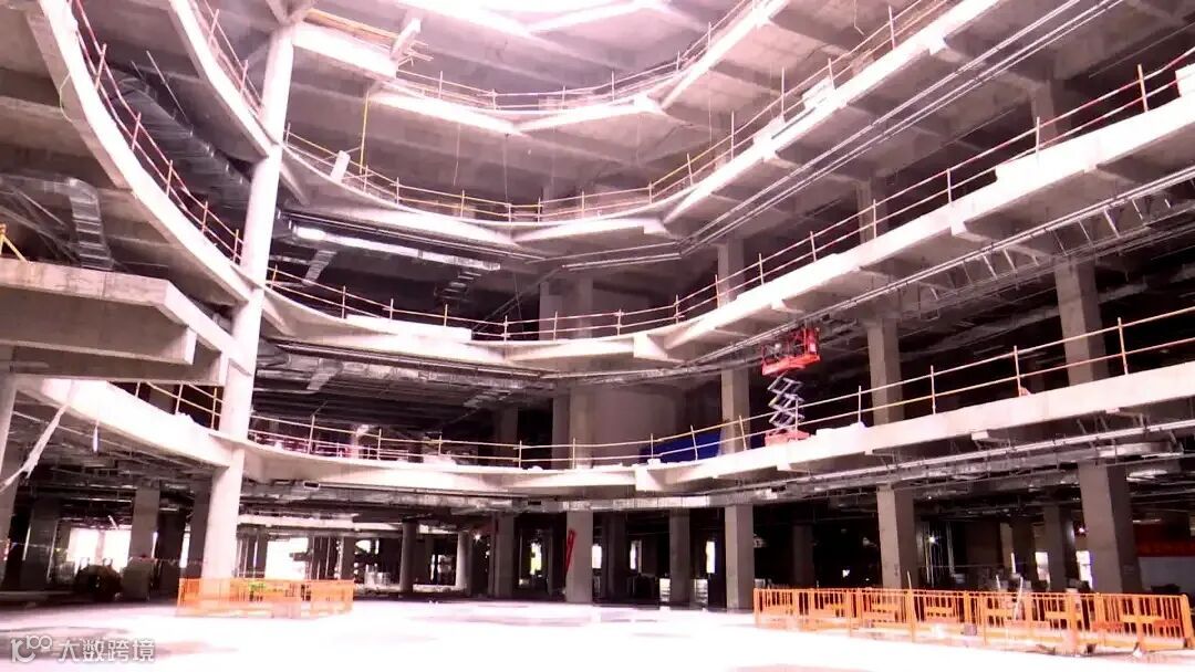 整个大屏八千多平米,一个3000多平方米的音乐喷泉和led大屏共同互动。外边的整个幕墙和景观已经完成40%左右,五月份具备室外运营的条件。