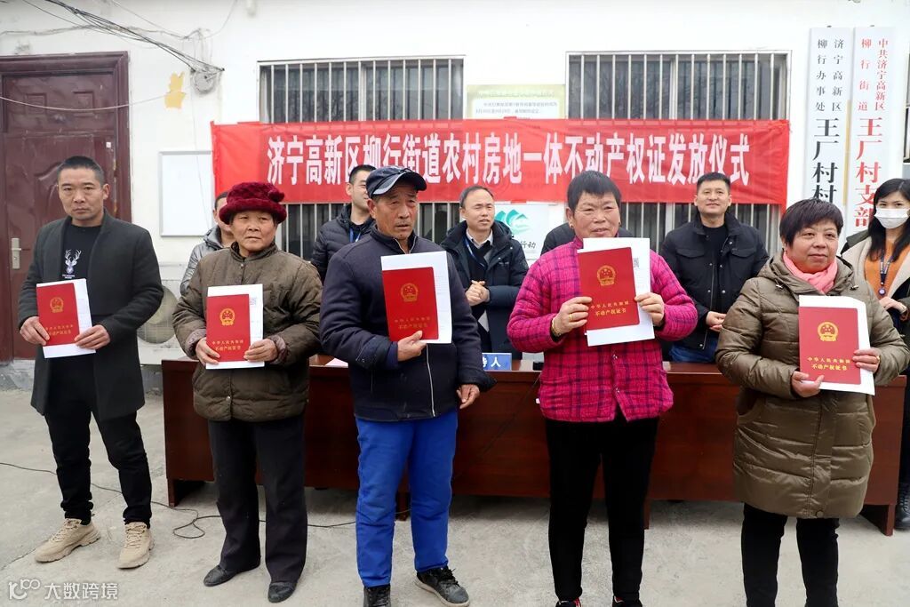 近日,济宁高新区柳行街道农村房地一体不动产权证书颁证仪式在王厂村举行,王厂村102户村民首批领到了产权证,从而拉开了全区农村房地一体不动产权证书颁发工作的序幕,这也是我市主城区第一批的颁发农村房地一体不动产权证书。